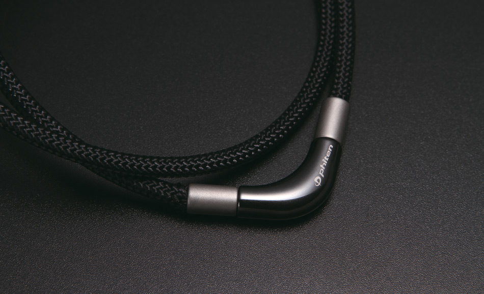 Phiten's V-Chopper ustilises our METAX technology. The front-facing V-shaped fastener can be detached at either end and is made of pure titanium to sure it is light and sophisticated. The leather look cord is made of polyester and elatomer and is impregnated with METAX technolgy. the "METAX" logo and "Phiten" logo are laser engraved on the V-shaped clasp