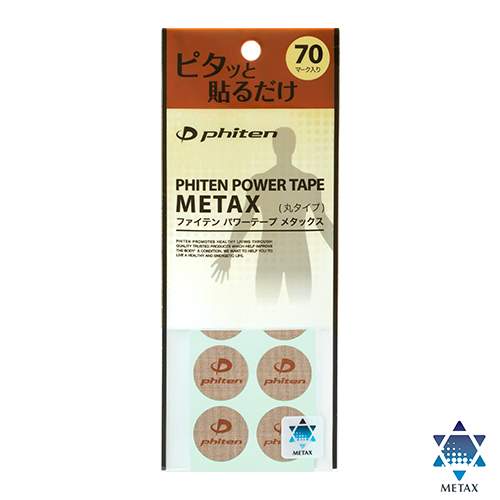 Metax Tape adopts the strong relieving power of the Metax product line. With its quality adhesive property, the tape sticks just right without the worry of peeling off. In addition to AquaTitan and AquaPalladium of Phiten AquaMetal Technology, carbonized titanium and mica are coated over the back surface to increase effectiveness. Download Application Chart Download Brochure Download Phiten-Application-Diagrams Download applications for Neck and shoulder tension and pain and migraines and also Deep shoulder pain Download application for Forearm tension and pain or stiff painful fingers perhaps caused by arthritis or carpel tunnel Download application for Tennis elbow Download application for Lower back pain and sciatica Download application for various causes of knee pain Download application for Ankle or achillies and also for Heel Pain or Plantar Fasciitis Download application for Phiten-Immunity-Support Other Metax Tapes available: Metax Tape Elliptical 50 Pack Power Level 3 Metax Tape + Ti Discs 50 Pack Power Level 4 Metax Tape + MCC Elliptical Power Level 5